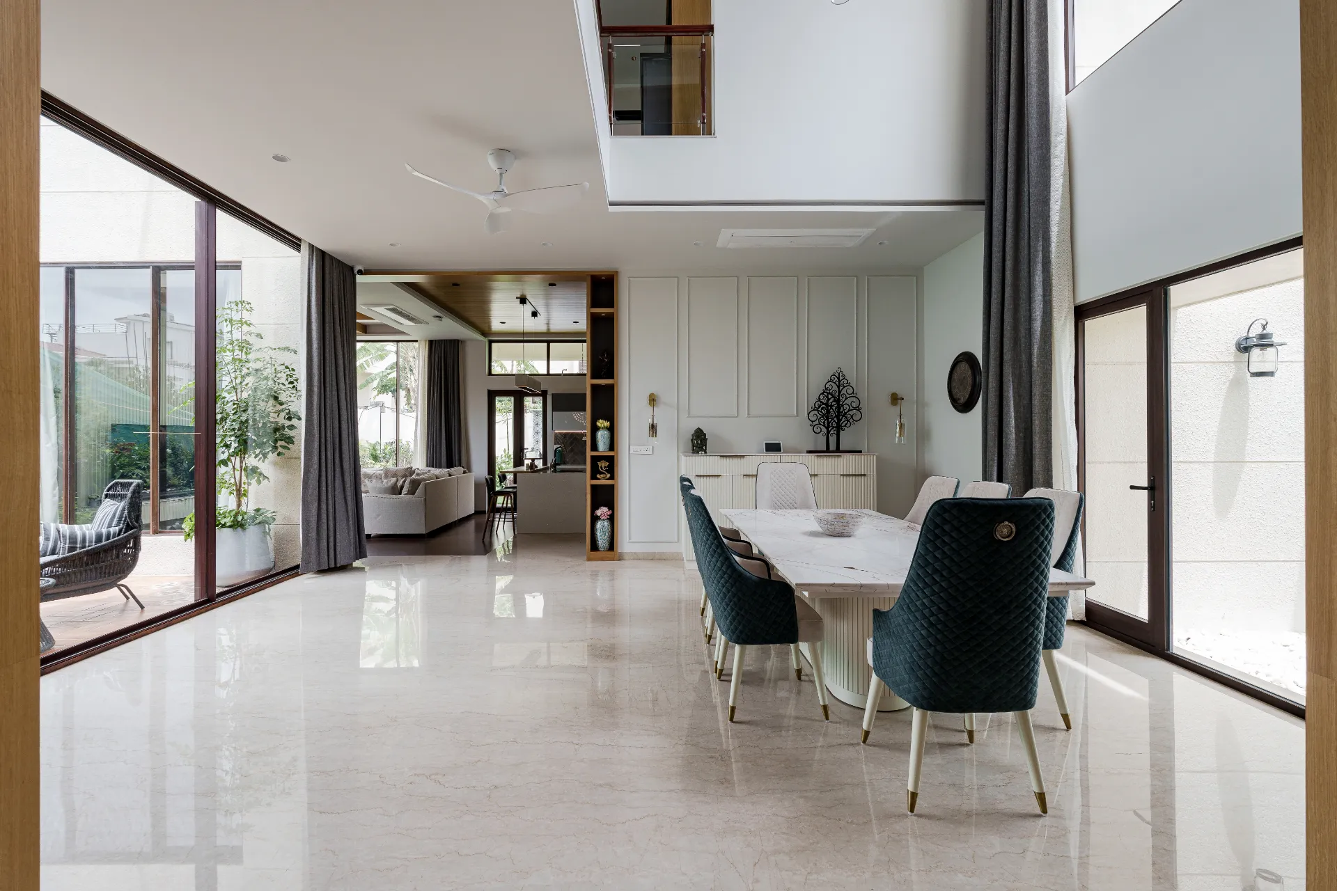 With a quiet sense of grandeur, this home embraces a refined Neo-Classical theme—interpreted with softness, restraint, and soul. Subtle ornamentation, carved details, and balanced symmetry create a timeless frame, while muted tones and rich textures lend a sense of warmth and ease. The design language is deliberate yet fluid, allowing each element to breathe. Rooted in heritage and guided by emotion, it’s a home that feels storied, serene, and completely one of a kind.